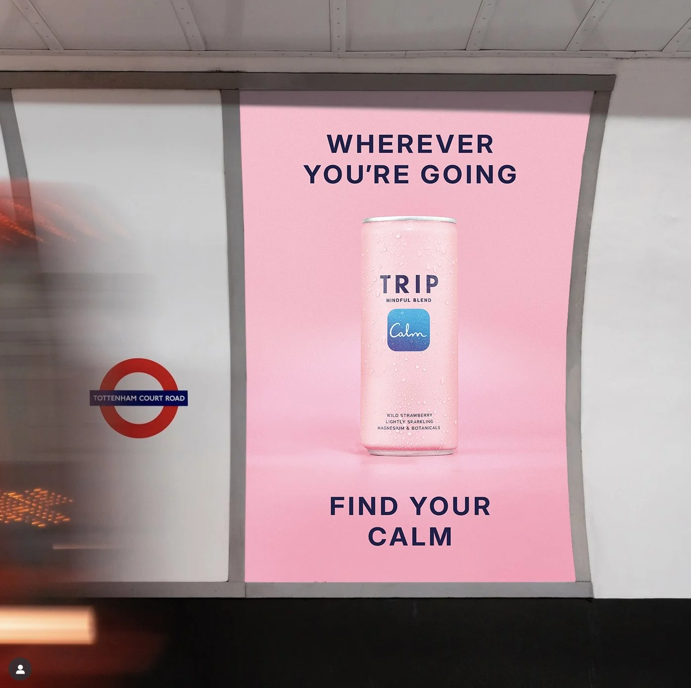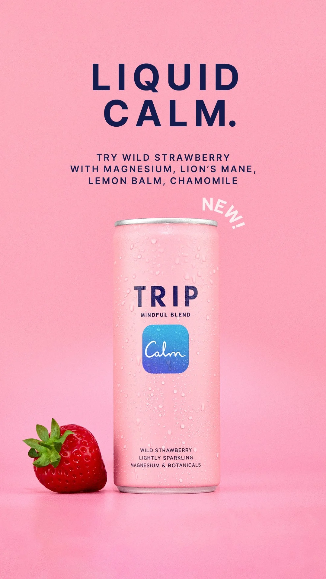 We partnered with TRIP, the CBD-infused drinks company on a mission to bring calm to modern life, to launch their latest product: Wild Strawberry. This wasn’t just a flavour drop, it was a cultural moment. A powerful new collaboration with Calm, the leading mental wellness app, offering three months of Calm Premium with every can.